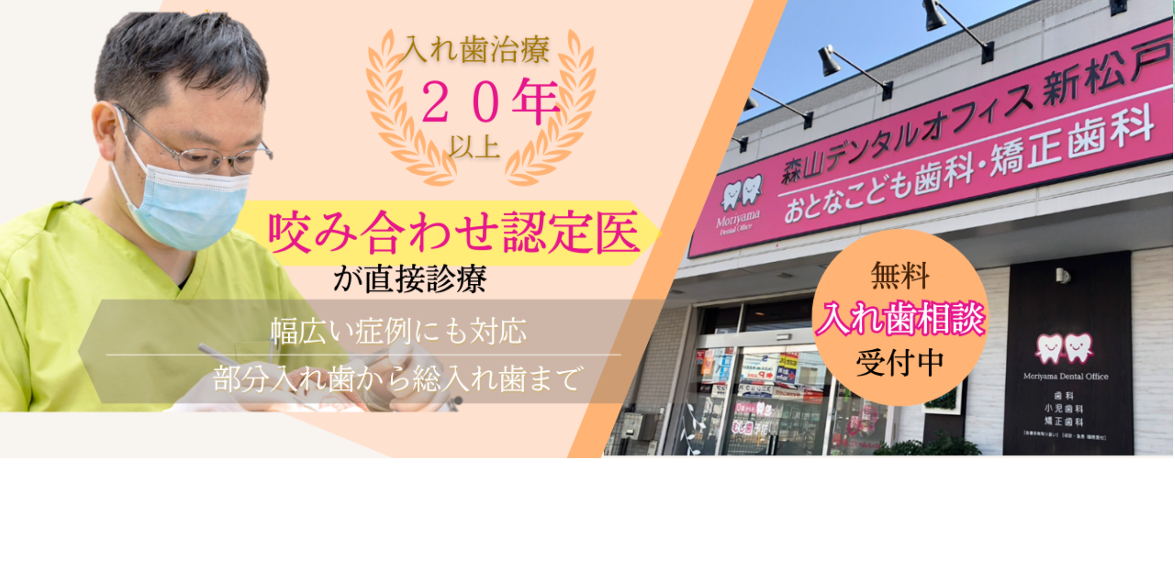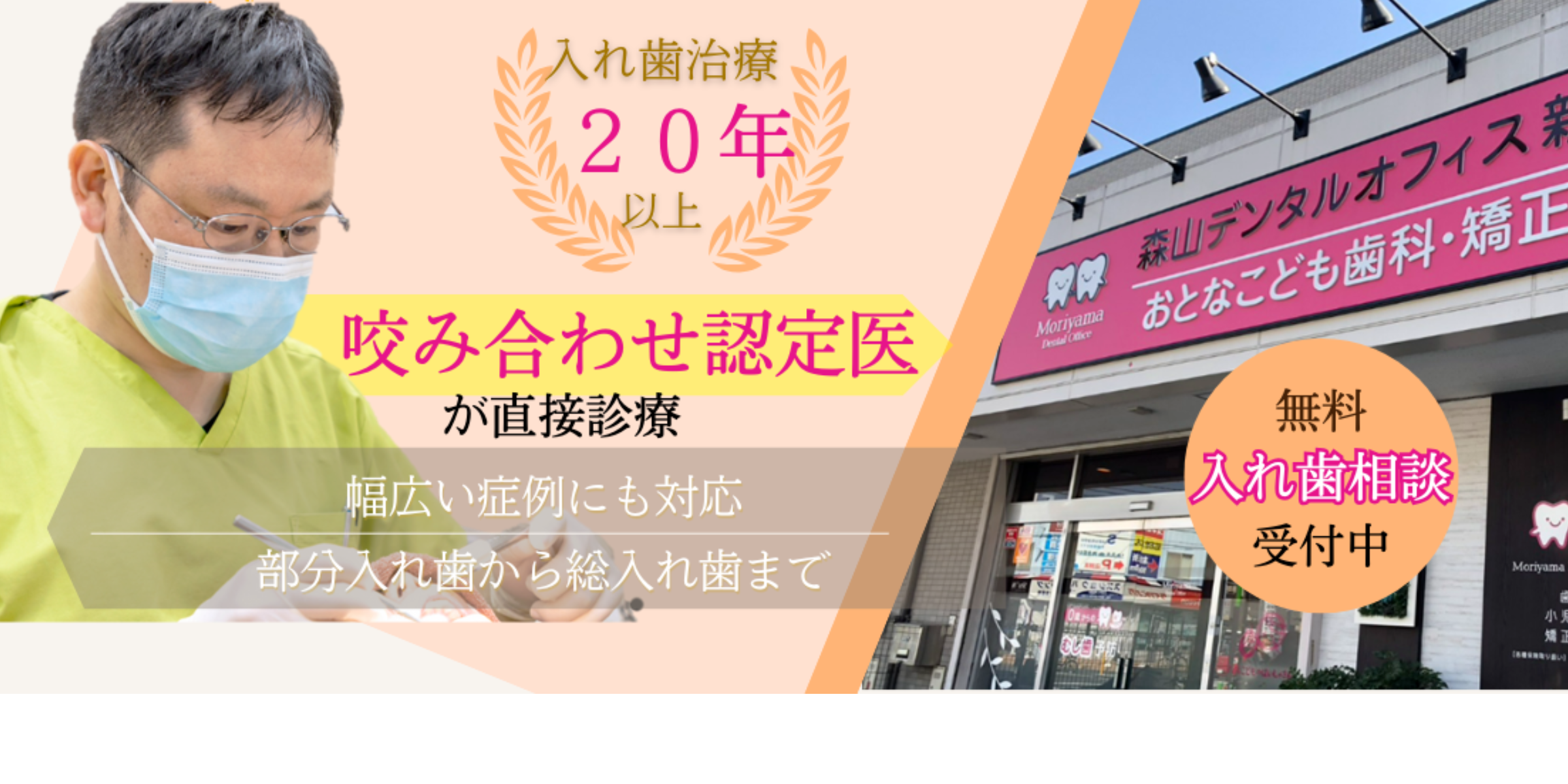 20年以上(※)の治療実績があり、噛み合わせ治療に精通した日本顎咬合学会認定「咬み合わせ認定医」でもあります。部分入れ歯から総入れ歯まで、専門性の高い治療をご提供できます。