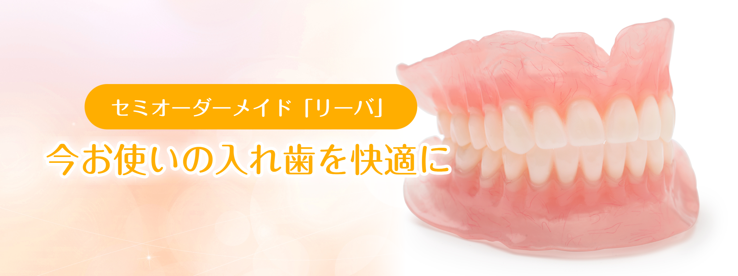 今お使いの総入れ歯の噛み心地をもっと良くしたいとお考えの方はもちろん、痛む・ガタつく・強く噛めないといった悩みをお持ちの方にはぴったりの入れ歯です。最短2回の通院で完成する点とともに、従来のフルオーダーメイドのシリコン義歯に比べてリーズナブルな点も、リーバの大きなメリットです。